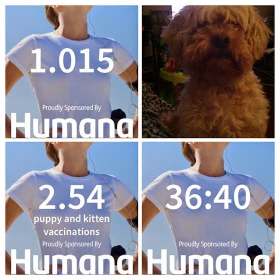 managed to increase our speed. We did 2.25 miles in under 40 minutes. And we provided 5.65 vaccines to the puppies and kittens. Yea, us!